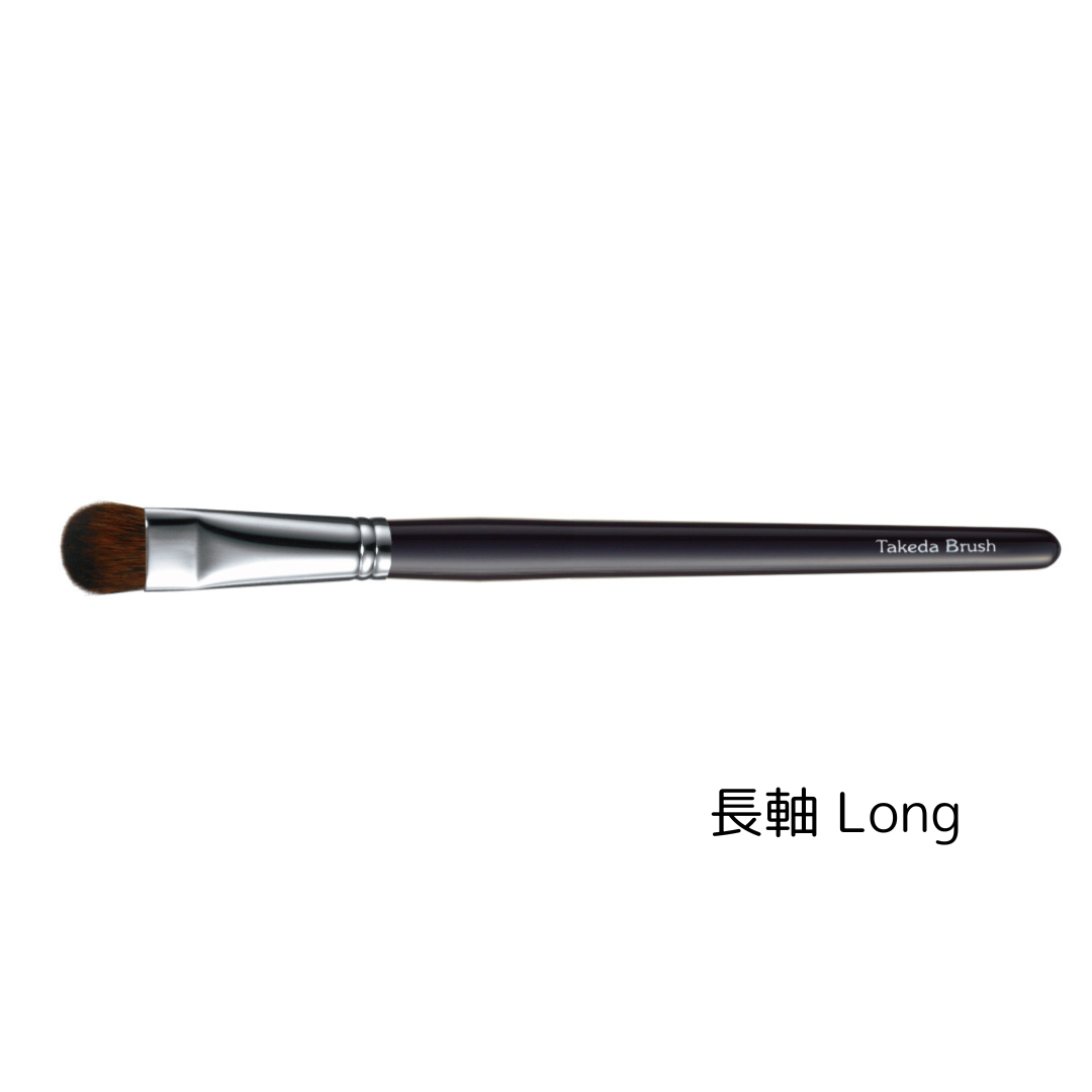 This short, round, flat brush offers excellent controllability, delivering smooth adhesion and consistent color placement. The thick yet delicate bristles provide a comfortable feel in the hand and precise handling. Ideal for glitter and pearl powders with a soft, refined finish.