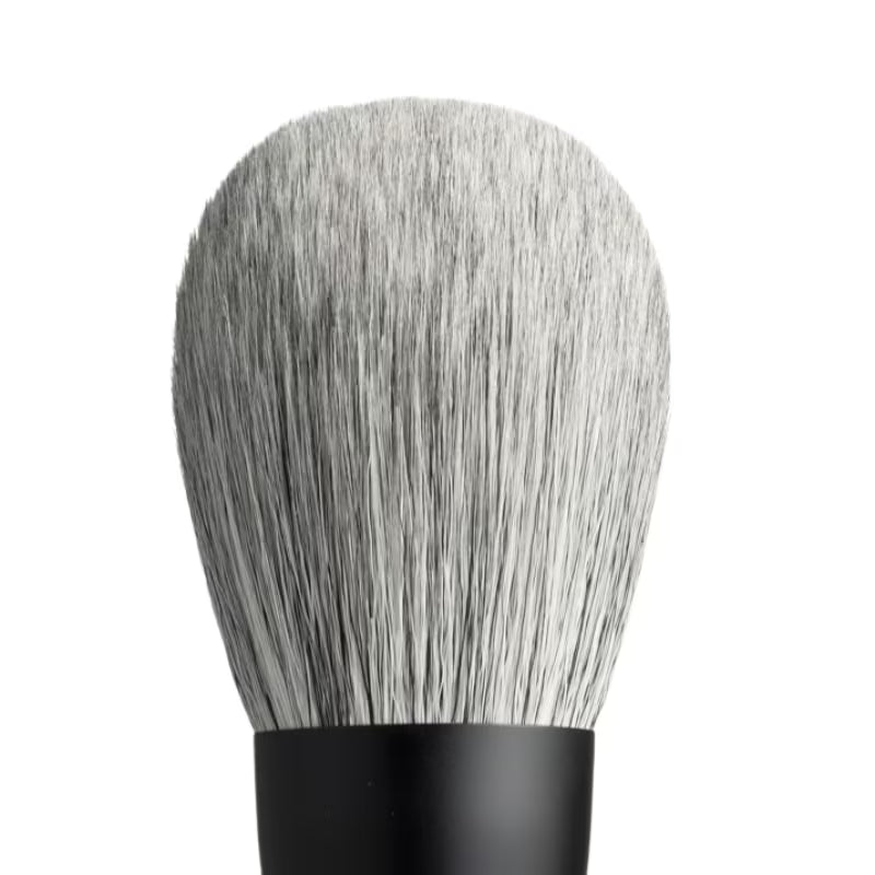 This balanced blend of bristles allows the brush to pick up and distribute powder products smoothly, delivering an even and natural finish on the skin. Whether used for powder, blush, or finishing touches, it provides excellent product pickup and seamless blending for a polished complexion.